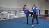 Продовжуємо опановувати прийоми самозахисту за темою «Комбінації ударів ліктями та колінами і захист від них». Урок проводить викладач кафедри тактичної та спеціальної фізичної підготовки, заслужений майстер спорту із кікбоксінгу, капітан поліції Руслан Кушніренко.