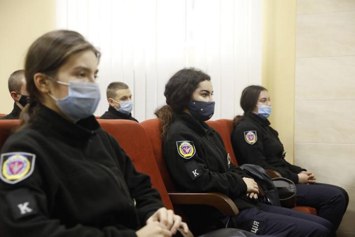 Під час жвавої та тривалої дискусії з помічником ректора та деканом факультету, учасником бойових дій, полковником поліції Костянтином Гарбузюком, здобувачами освіти ставилися запитання щодо норм та правил поведінки, професійної етики майбутніх працівників органів досудового розслідування та кримінальної поліції в службовій діяльності та повсякденному житті.