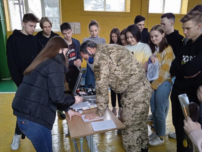 Представники університету також продемонстрували школярам роботу експерта-криміналіста та ознайомили з правилами поведінки в екстремальних умовах. Учні переглянули відеофільм про ХНУВС й отримали інформаційні матеріали для абітурієнтів.