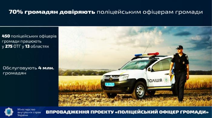 За його словами, незалежні опитування в територіальних громадах, де працюють такі офіцери, показало 70-відсоткову довіру до поліцейських.