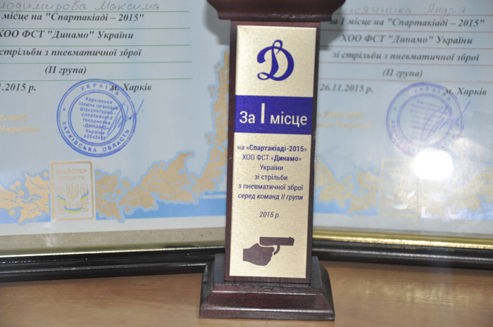 На базі ХОО ФСТ «Динамо» України відбулися змагання зі стрільби з пневматичної зброї в залік «Спартакіади–2015». За результатами змагань збірна команда Харківського національного університету внутрішніх справ з кульової стрільби зайняла І командне місце в групі ОКФК–2 серед відомчих вищих навчальних закладів м. Харкова. У змаганнях також взяли участь команди Національної академії Національної гвардії України, Національного університету цивільного захисту України, факультету підготовки слідчих для Служби безпеки України Національного юридичного університету ім. Я. Мудрого.