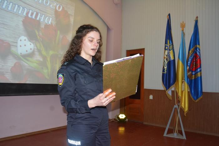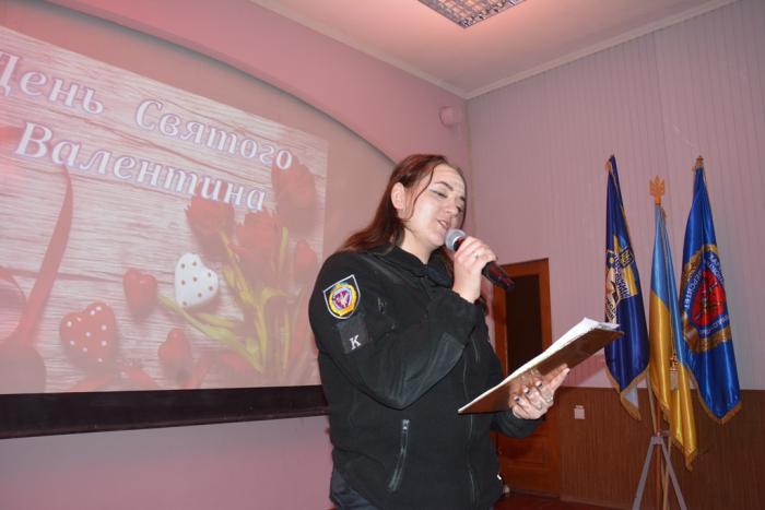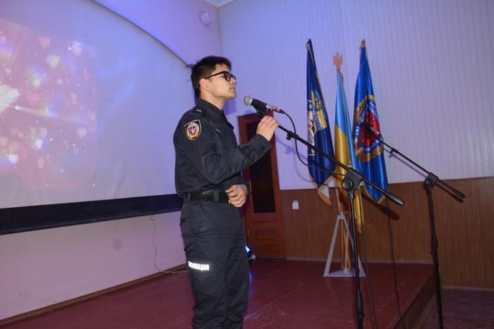 Яскраву культурно-мистецьку програму підготувала творча курсантська молодь 1 курсу. Виступили: вокальний ансамбль «Експромт» – соліст Андрій Савадян, вокалісти – Катерина Даджин і Тетяна Сахно. Поетичні твори читали Анастасія Сергійко та Анна Аушева. Ведучі заходу – Микола Сіроштан та Влада Анцибор. Надзвичайно зворушливим стало привітання курсанта 2 курсу Ярослава Мойсенєнко, який освідчився у коханні курсантці 1 курсу Мар’яні Бойко.