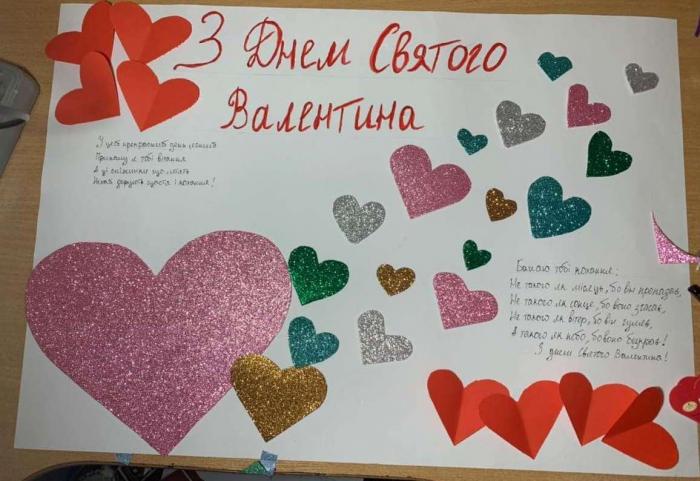 Не залишився День закоханих і поза увагою студентів-першокурсників філії. Вони зробили велику Валентинку, яка символізує щирі почуття та теплоту люблячих сердець.