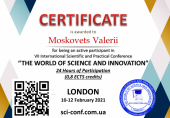 Кандидат соціологічних наук, голова профспілкової організації Харківського національного університету внутрішніх справ Валерій Московець взяв онлайн-участь у VII Міжнародній науково-практичній конференції «Світ науки та інновацій», яка відбулася у м. Лондон. Під час наукового заходу представник університету виступив із доповіддю «Специфіка соціокультурного підходу в дослідженні підліткової делінквентності». За результатами конференції отримано сертифікат учасника. Тези доповідей науковців опубліковано у науковому збірнику.