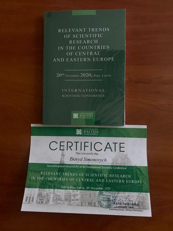 Начальник відділу організації осітньо-наукової підготовки Харківського національного університету внутрішніх справ доктор юридичних наук, старший науковий співробітник, майор поліції Давид Сімонович дистанційно взяв участь у Міжнародній науковій конференції «Relevant trends of scientific research in the countries of Central and Eastern Europe» та отримав відповідний сертифікат.