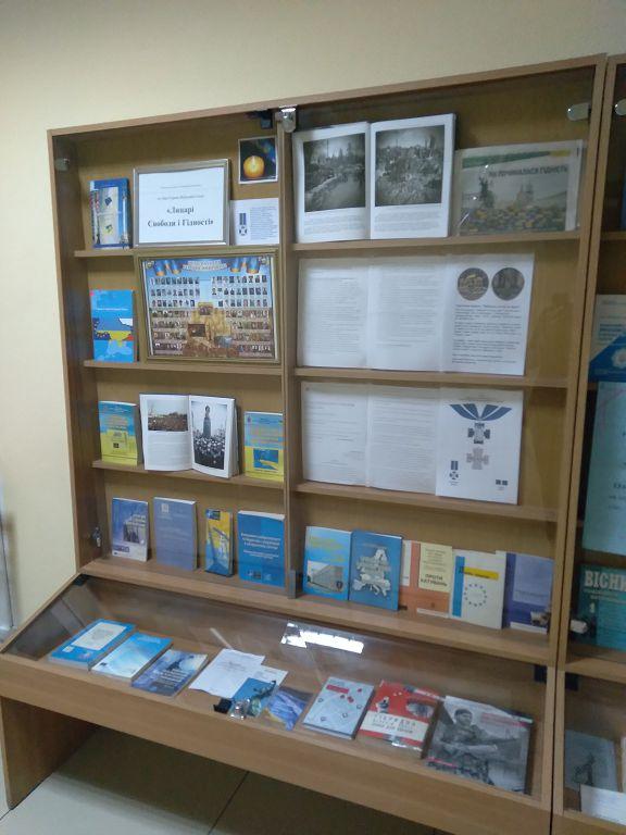 Зібрані видання останніх років, у тому числі, тематичні фотоальбоми, кольоровий плакат із портретами тих, хто поклав своє життя за краще майбутнє України – усе це привертає увагу до ціни, яку платить Україна за вільний вибір шляху євроінтеграції і захисту свого суверенітету.