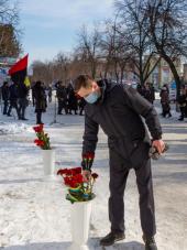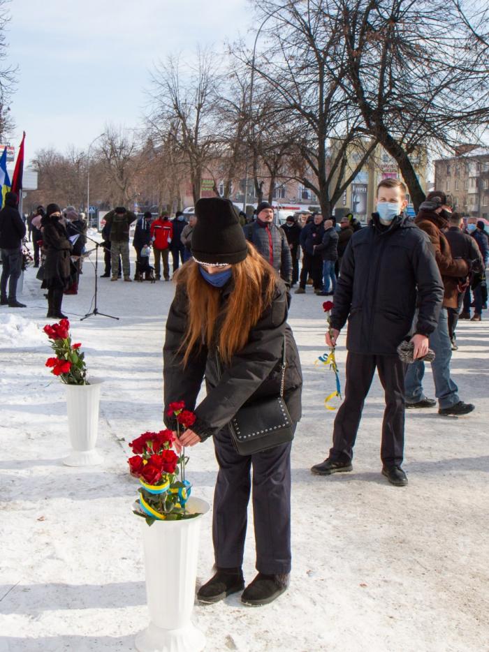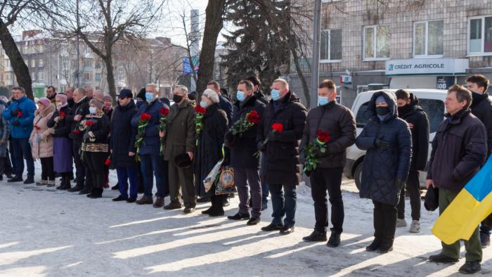 Присутні вшанували хвилиною мовчання всіх загиблих героїв і поклали квіти до пам'ятного знаку «Героям Небесної Сотні» міста Кременчука.