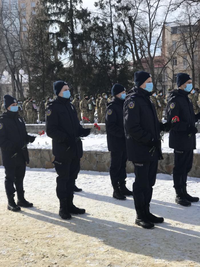 У День вшанування подвигу учасників Революції гідності та увічнення пам'яті Героїв Небесної Сотні працівники, курсанти, студенти, ад’юнкти та аспіранти Харківського національного університету внутрішніх справ разом із представниками органів державної влади та місцевого самоврядування, громадських організацій, харків’янами вшанували пам'ять героїв, які віддали своє життя за свободу та європейській вибір громадян України, і поклали квіти до пам'ятника борцям, які в різні роки відстоювали право нашої держави на незалежність і суверенітет.