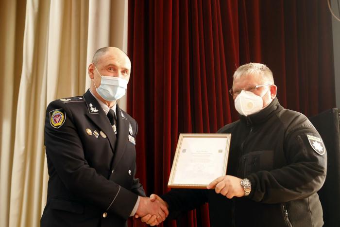 За зразкове виконання посадових обов’язків, особисту ініціативу і самовідданість, високий професіоналізм відомчу заохочувальну відзнаку МВС України – Подяку оголошено інспектору групи протипожежної безпеки відділу матеріального забезпечення старшому лейтенанту поліції Миколі Овчарову. Цінним подарунком МВС України – годинником нагороджено курсантку факультету № 3 рядову поліції Вікторію Голуб. Подякою голови Харківської обласної державної адміністрації відзначено директора інституту післядипломної освіти Дмитра Косінова.