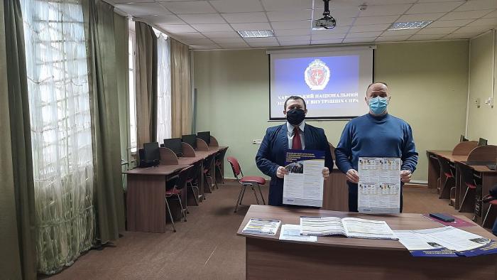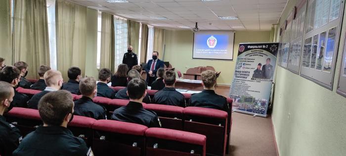 Представники факультету № 2 заступник декана з навчально-методичної роботи Сергій Гіренко, провідний фахівець Валерій Бондаренко та курсант першого курсу Владислав Клєц із метою проведення профорієнтаційних заходів відвідали Комунальний заклад «Харківський ліцей з посиленою військово-фізичною підготовкою “Правоохоронець”» Харківської обласної ради.