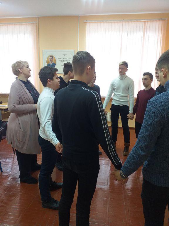 Заняття було проведено з елементами тренінгу із вправами на розвиток контактності та ефективної взаємодії в групі: «Молекули», «Острів-1», «Сліпий скульптор», «Театр: п’єса, яка задовольнить усіх».