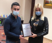 Подяку декану факультету № 6 Харківського національного університету внутрішніх справ Оксані Брусаковій вручив представник бізнес-центру Рауф Мірзоєв.