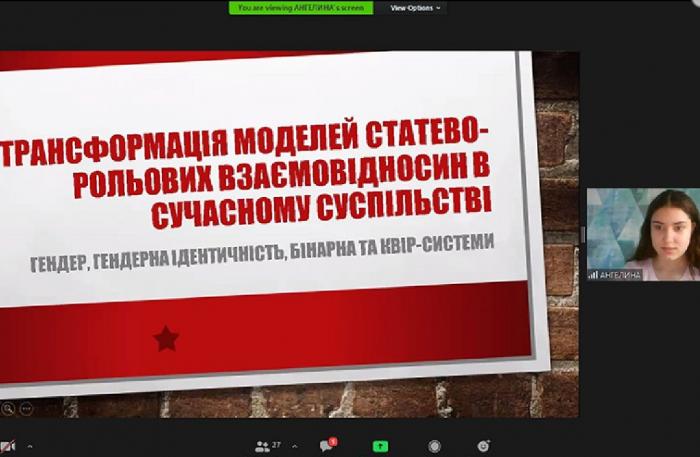 Відкриваючи зібрання, керівниця гуртка кафедри соціології та психології, кандидатка біологічних наук Олена Шахова наголосила, що метою наукового заходу є створення комфортного простору, де можна замислитися та дискутувати щодо різних стереотипів стосовно ролей жінок і чоловіків у суспільстві.