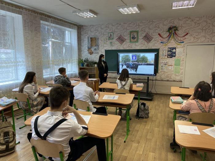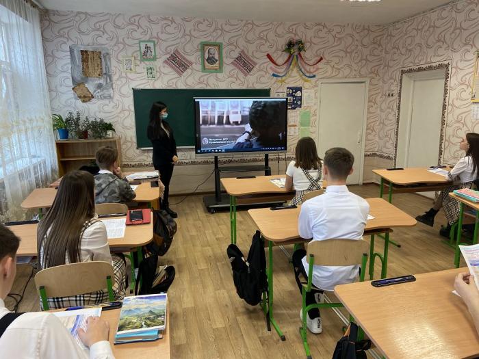 Викладач кафедри правоохоронної діяльності та поліціїстики факультету № 6 Харківського національного університету внутрішніх справ Анастасія Холдоєнко провела профорієнтаційну зустріч з учнями 11 класу Комунального закладу «Нижньотеплівська загальноосвітня школа І-ІІІ ступенів Станично-Луганського району Луганської області».