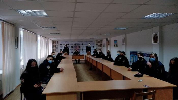 Голова Наукового товариства, старший науковий співробітник відділу організації наукової роботи, кандидат юридичних наук Олександр Хань повідомив курсантам і студентам про можливість їх участі у наукових гуртках та конкурсах, що проводяться на базі ХНУВС та інших закладів вищої освіти, запропонував брати участь у наукових конференціях, семінарах та круглих столах нашого університету та інших навчальних закладів. Він запросив членів Наукового товариства взяти участь у XXVIII науково-практичній конференції курсантів та студентів «Сучасна наука і правоохоронна діяльність», яка відбудеться у травні поточного року.