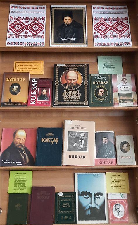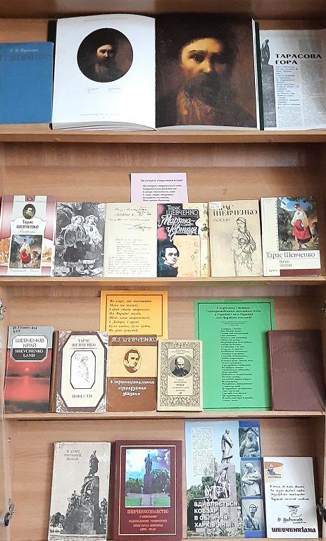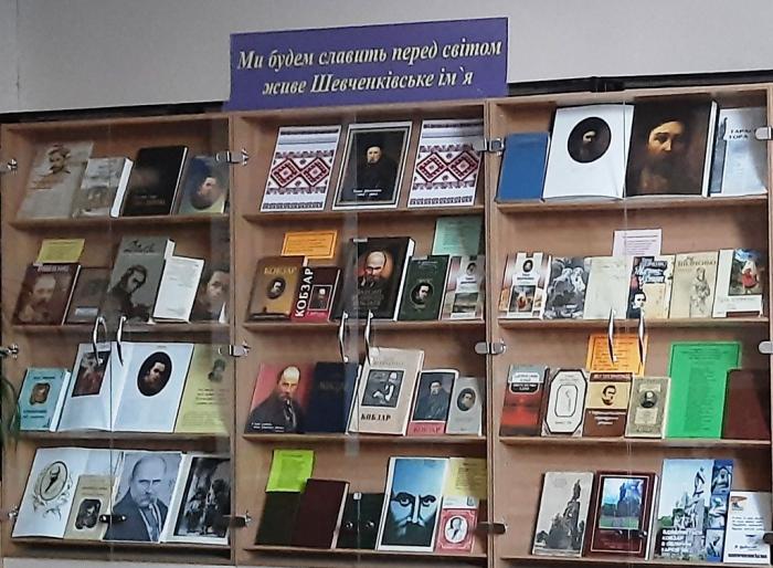 До Дня народження (9 березня) видатного українського поета, художника Тараса Григоровича Шевченка бібліотека презентує книжково-ілюстративну експозицію «Ми будем славить перед світом живе Шевченківське ім’я».