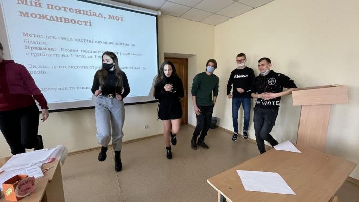 Бінарне заняття мало інформаційний і частково пошуковий характер, чітку структуру, логічну та системну подачу матеріалу. У процесі бесіди між учасниками було опрацьовано низку ситуаційних завдань, на яких студенти малювали колесо життєвого балансу, оцінювали стан важливих частин життя та пропонували, як краще їх удосконалити.