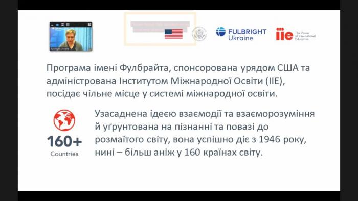 У ХНУВС відбулася онлайн-презентація програм академічних обмінів імені Фулбрайта. Презентацію проводила Інна Бариш – Координатор програм обміну для молодих науковців і студентів.
