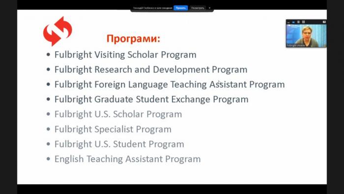 Під час заходу здобувачам вищої освіти та працівникам ХНУВС розповіли про особливості програми, зокрема про те, що програма імені Фулбрайта, спонсорована урядом США та адміністрована інститутом Міжнародної Освіти, посідає чільне місце у системі міжнародної освіти. Успішно діє з 1946 року, сьогодні – у понад 160 країнах світу. За час існування Програми в Україні, з 1992 року, понад 1100 українців навчалися, стажувалися та проводили дослідження у США. Понад 750 американців викладали в українських закладах вищої освіти і займалися науковою працею.