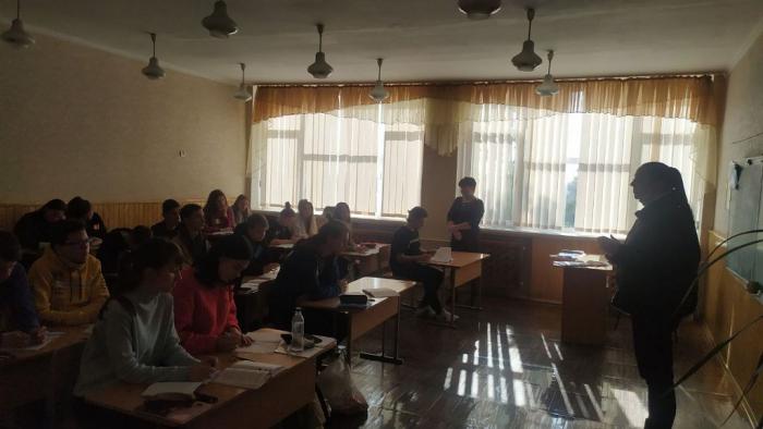 Марина Василенко розповіла старшокласникам про умови вступу до філії, правила подання документів кандидатів на навчання у закладах вищої освіти зі специфічними умовами, роз’яснила особливості організації освітнього процесу, практичного навчання, наукової та міжнародної діяльності, дозвілля студентів і курсантів. А також були надані вичерпні відповіді на запитання учнів стосовно навчання на денній та заочній формах, наявності військової кафедри, матеріально-технічної бази вишу.