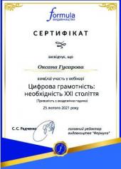 Онлайн-захід об'єднав представників закладів вищої, фахової передвищої, професійної (професійно-технічної), загальної середньої освіти тощо. Учасники вебінару ознайомилися з наступними питаннями: концепція цифрової грамотності та її складові, як і коли навчати цифровій грамотності, сучасні підручники для цифрових дітей, як викладачам порозумітися з цифровим поколінням. Цифрова грамотність — вимога сьогодення, що дозволяє ефективно та безпечно використовувати сучасні цифрові технології.
