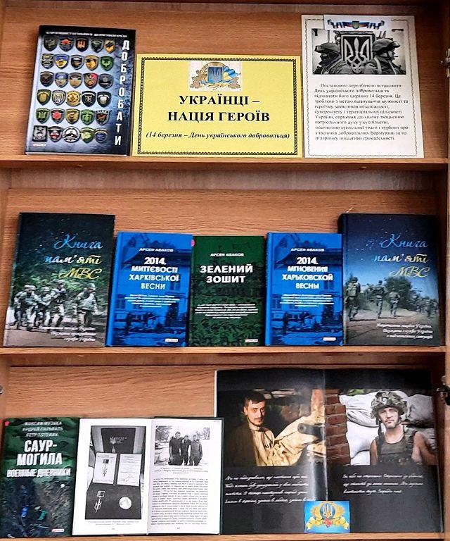 З нагоди Дня українського добровольця, який відзначається в Україні щорічно 14 березня, бібліотека університету презентує книжково-ілюстративну експозицію «Українці – нація героїв».