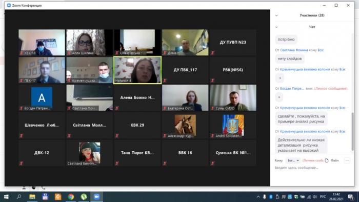 Відбулася онлайн зустріч представників науково-педагогічного складу факультету № 6 ХНУВС, які забезпечують реалізацію програми «Психологія» (Практична психологія) першого (бакалаврського) рівня освіти з керівництвом та психологами установ виконання покарань Північно-Східного міжрегіонального управління з питань виконання кримінальних покарань Міністерства юстиції, які виступають стейкхолдерами зазначеної програми. У зустрічі також взяли участь здобувачі освіти за ОПП «Психологія» (Практична психологія).