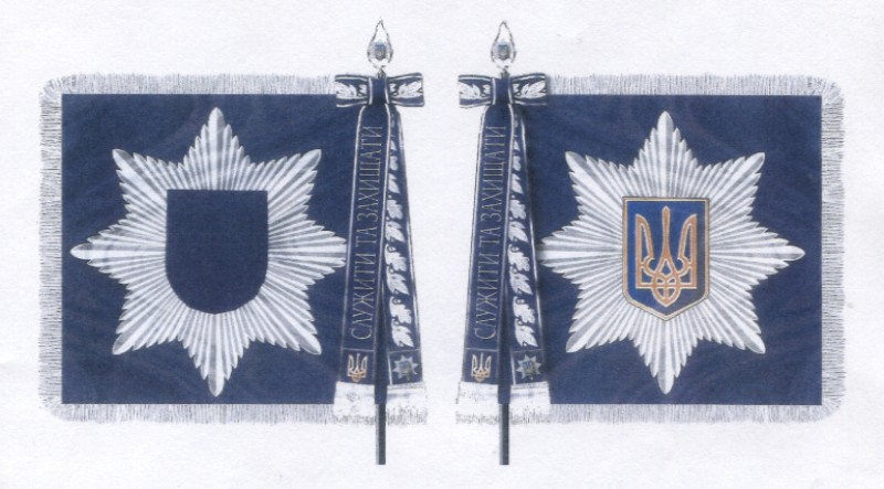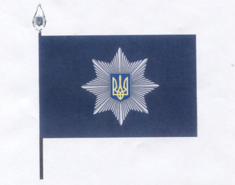Прапором Національної поліції України є прямокутне полотнище темно-синього кольору у центрі якого розміщено емблему Національної поліції України. Крім цього, цим Указом затверджено зразок службового прапора територіального органу, науково-дослідницької установи Національної поліції України.