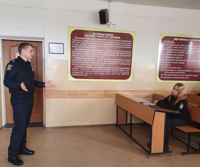 Під час заняття працівник практичного підрозділу поліції поділився з курсантами своїм досвідом роботи в підрозділах слідства та секторі дізнавачів, розповів про специфіку взаємодії слідчих з представниками інших правоохоронних органів, звернув увагу присутніх на тактику спілкування поліцейських з різними верствами населення, і насамперед, з такою категорією громадян, як наркомани та раніше судимі особи, а також ознайомив курсантів з порядком застосування до осіб примусових заходів та методикою складання процесуальних документів, що підвідомчі поліції, тощо.