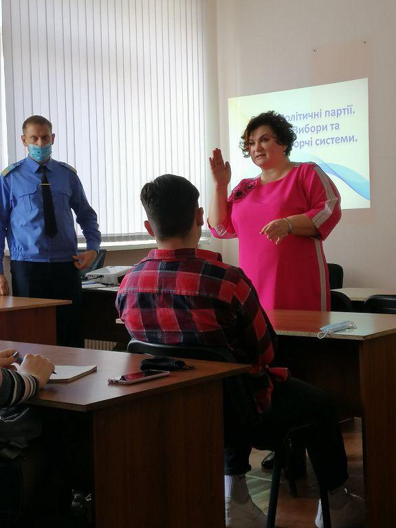 Під час заняття на тему «Політичні партії, вибори та виборчі системи» курсанти пройшли декілька онлайн-тестів на визначення політичних координат, вчилися моделювати ситуації політичних процесів. Змістовна розповідь про проблеми діяльності органів місцевого самоврядування, поведінки громадян під час виборів, викликала жваву дискусію.