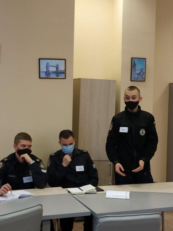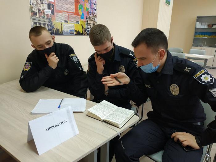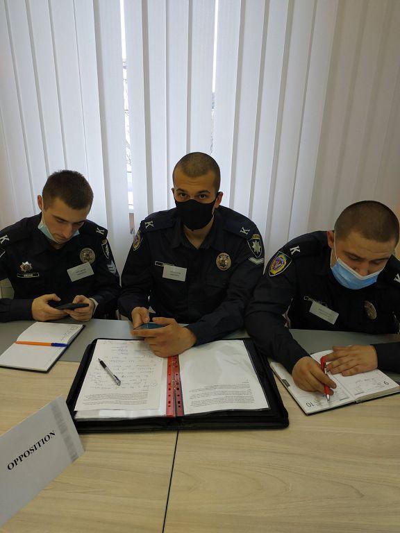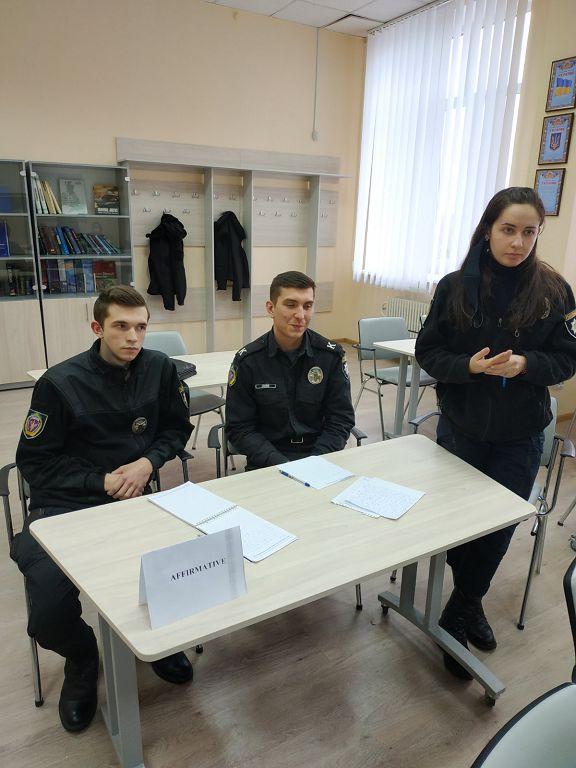 Тема дебатів фінального туру, в якому залишилося 2 команди, – «Вища освіта є обов’язковою для поліцейських». Команда № 1 продовжувала дебати в складі курсантів 3 курсу факультету № 2 Юрія Рескаленка, Руслана Чубенка та курсанта 1 курсу факультету № 1 Максима Куща.