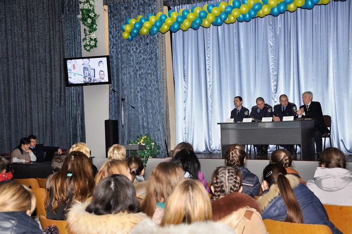 Присутній на зустрічі декан факультету права та масових комунікацій Валерій Московець розповів школярам про навчання за контрактом, спеціальності, які отримують студенти після закінчення університету, про можливості подальшого підвищення освітнього рівня, які надає університет. Також він запросив учнів та їхніх батьків відвідати університет на День відкритих дверей, який відбудеться 13 грудня, зустрітися з керівництвом вищого навчального закладу, оглянути навчальну базу, побутові умови курсантів і студентів, отримати консультацію щодо вимог, яким має відповідати майбутній абітурієнт (фізична підготовка), та почути відповіді на запитання.