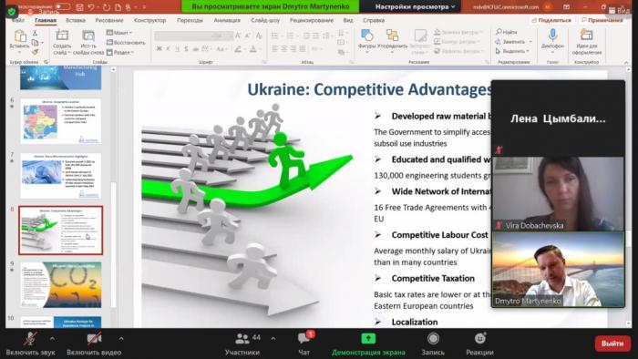 Голова циклової комісії економіки та управління кандидат економічних наук Олена Цимбалістова та викладачі циклової комісії економіки та управління кандидат економічних наук Марина Харченко та Олена Черніхова взяли участь в онлайн-заході «Україна, як стратегічний виробничий хаб для глобальних ланцюгів постачань», на якому було розкрито потенціал України як виробничого хабу.
