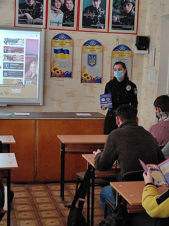 Слухачі Сумської філії ХНУВС – дільничні офіцери поліції провели профорієнтаційні зустрічі у школах Кропивницьої, Луганської та Сумської областей. Єгор Кривошей відвідав ЗОШ № 31 та № 4 в м. Кропивницький, Катерина Каліновська провела лекцію в Тернівській ЗОШ Сумської області, Юлія Петренко завітала до Новопсковського професійного аграрного ліцею Луганської області. Учням була надана інформація щодо умов вступу на навчання до Сумської філії, правил подання документів абітурієнтами до закладів вищої освіти зі специфічними умовами навчання, роз’яснено особливості організації освітнього процесу, практичного навчання, наукової та міжнародної діяльності, дозвілля здобувачів вищої освіти. Поліцейські також дали вичерпні відповіді на численні запитання старшокласників. Після завершення заходу усі бажаючі отримали інформаційно-агітаційні матеріали з детальною інформацією про Сумську філію Харківського національного університету внутрішніх справ.