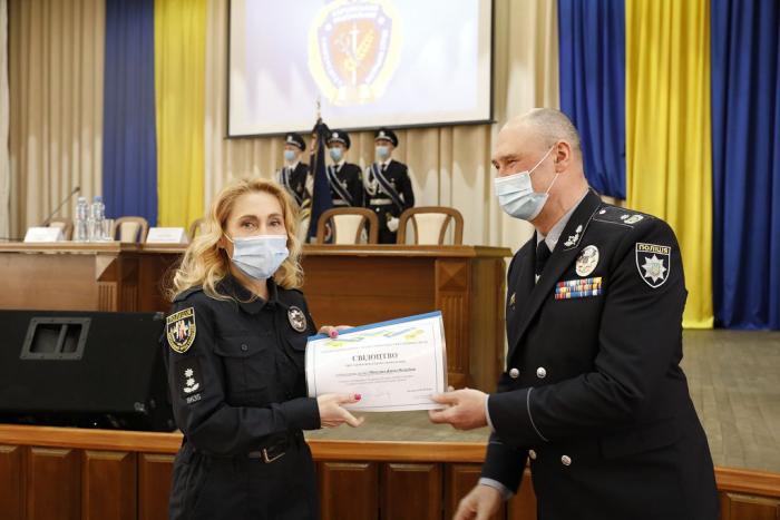 Свідоцтва про успішне завершення навчання слухачам курсів вручили ректор університету генерал поліції третього рангу Валерій Сокуренко, начальник Управління дотримання прав людини НПУ полковник поліції Руслан Горяченко, перший проректор полковник поліції Дмитро Швець. Ректор університету, звертаючись до випускників курсів, зазначив: «Ваша робота потрібна суспільству та українському народу. Громадяни мають відчувати, що держава піклується про них, що їх права захищені. І в цих питаннях ви – на передньому фронті». Він також побажав, щоб отримані на курсах знання стали в нагоді під час несення служби й добрим підґрунтям для подальшого професійного та кар’єрного зростання. «У своїх діях завжди керуйтеся законом! Служіть так, щоб вас поважали люди та оберігав Господь Бог!», – наголосив Валерій Сокуренко.