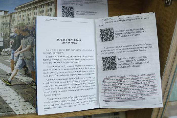 Експозиція містить періодичні видання та фотоматеріали про події квітня 2014 року. На експозиції представлена книга Міністра внутрішніх справ України Арсена Авакова «2014. Миттєвості харківської весни», в якій висвітлено події квітневої ночі у Харкові. Унікальність цієї книги в тому, що читач за QR-кодами отримує можливість послухати також аудіозаписи розмов сепаратистів. Ця книга – жива історія подій: хроніки, факти, документи, пряма мова.