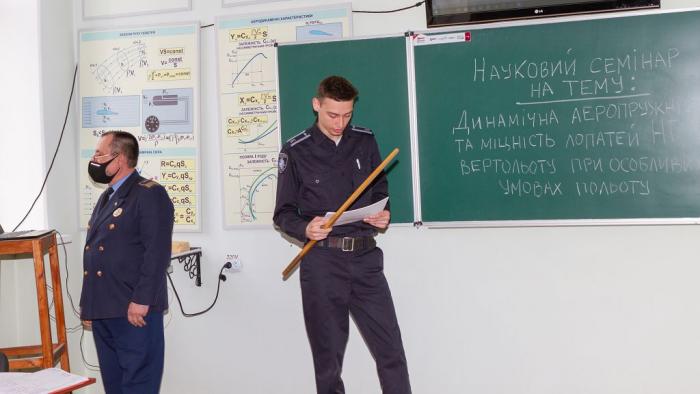 Під час семінару курсанти виступили із доповідями. Резонатори, рецензенти та наставники по кожній темі доповідей виступили з критичними зауваженнями й пропозиціями та надали практичні рекомендації щодо дій екіпажу вертольоту в особливих умовах польоту, користуючись власним досвідом льотної роботи. Курсантам також продемонстрували навчальні фільми за темою наукового семінару.