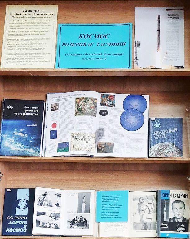 12 квітня – визначна дата в історії всього людства, яка знаменує початок космічної ери. Світова спільнота відзначає Міжнародний день авіації та космонавтики, а також день польоту людини в космос. Університетська бібліотека презентує розгорнуту книжково-ілюстративну експозицію «Космос розкриває таємниці». Вона розповідає про перший політ людини в космос, який здійснив Юрій Гагарін на космічному кораблі «Восток-1», про видатних творців і теоретиків, які зробили значний внесок в освоєння космічного простору. Серед них Сергій Корольов – українець, який став організатором польоту, ім’я якого золотими літерами вписано в історію космонавтики.