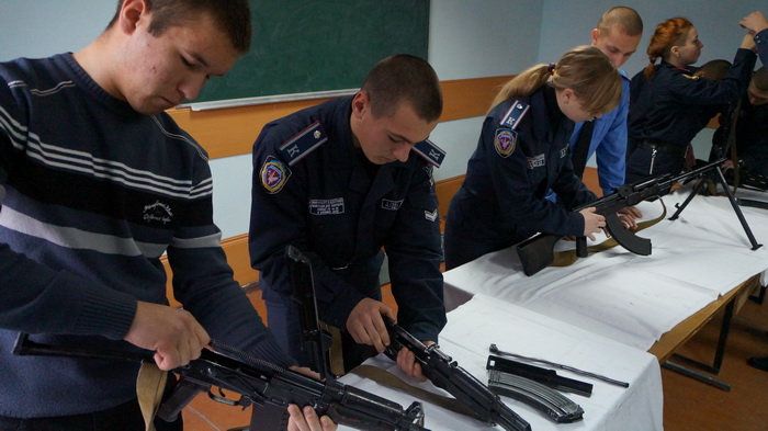 Із особовим складом 1-го курсу факультету з підготовки фахівців для підрозділів міліції громадської безпеки та кримінальної міліції у справах дітей Харківського національного університету внутрішніх справ проведено практичне заняття по вивченню матеріальної частини 5,45 мм.автомата Калашникова. Його організували начальник факультету з підготовки фахівців для підрозділів міліції громадської безпеки та кримінальної міліції у справах дітей, підполковник міліції Олег Винник, заступник начальника факультету, підполковник міліції Віталій Сагайдачний, керівник курсу, підполковник міліції Олександр Шломін та старшина факультету, старший сержант Дмитро Бабічев.