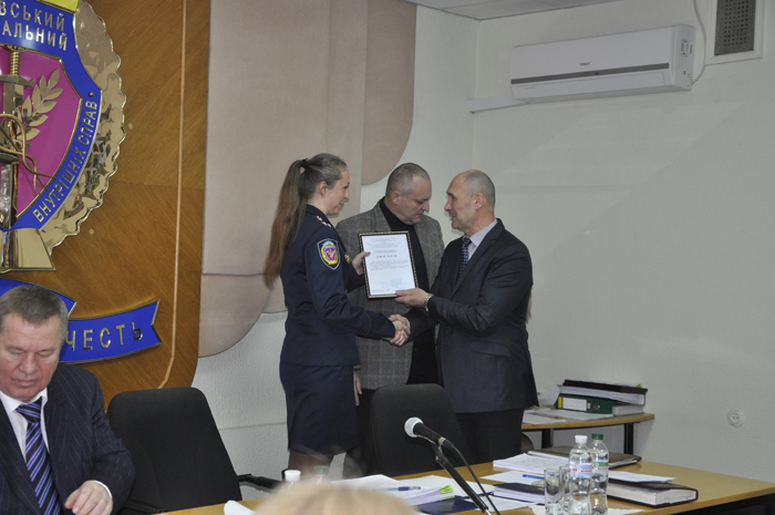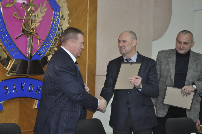 Ректор Харківського національного університету внутрішніх справ Валерій Сокуренко на засіданні Вченої ради вручив нагороди науковцям навчального закладу. Так, колектив авторів ХНУВС отримав сертифікат за кращу наукову роботу – навчальний посібник «Протидія злочинам у сфері земельних відносин» за загальною редакцією члена-кореспондента Національної академії правових наук України, доктора юридичних наук Сергія Гусарова. Посібник було визнано кращим у номінації «Наукові й науково-методичні продукти у сфері публічного управління» на Другій щорічній науково-освітній виставці «Публічне управління ХХІ», приуроченій до Всесвітнього дня науки.