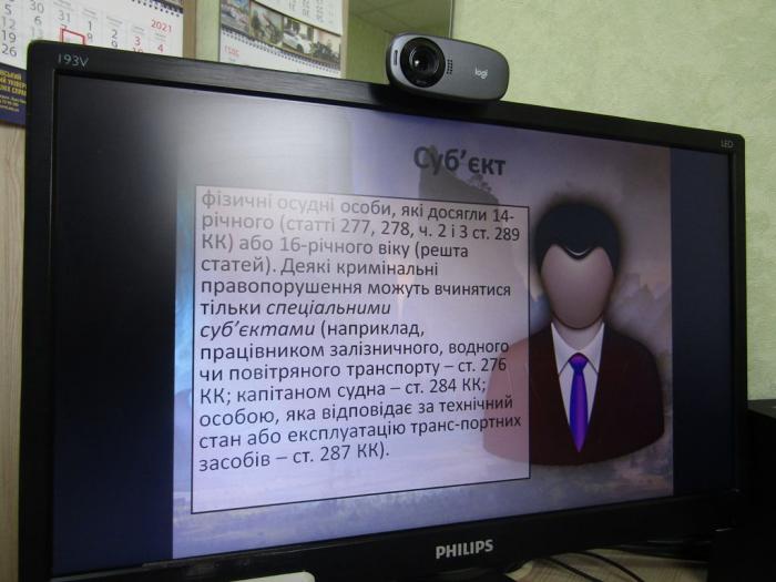 Викладачі разом зі студентами проаналізували загальні положення та види кримінальних правопорушень, передбачених розділом XI Особливої частини Кримінального кодексу України, акцентували увагу на змінах, внесених до нього у 2021 році. Олександр Худінов детально розповів про оформлення поліцейськими матеріалів ДТП, ознайомив здобувачів зі статистикою дорожньо-транспортних пригод по Сумській області за 2020–2021 роки, розповів про останні зміни, внесені до Правил дорожнього руху.
