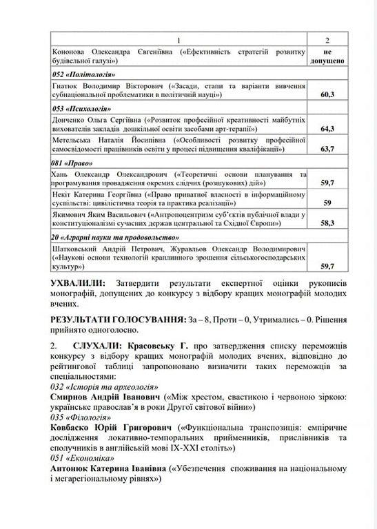 Монографія старшого наукового співробітника відділу організації наукової роботи кандидата юридичних наук Олександра Ханя «Теоретичні основи планування та програмування провадження окремих слідчих (розшукових) дій» отримала перемогу у конкурсі кращих монографій молодих вчених від Ради молодих учених при Міністерстві освіти і науки України за спеціальністю 081 «Право». В якості призу організатори конкурсу надали молодому науковцю грант на безкоштовну публікацію монографії.