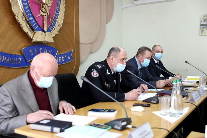 З доповідями виступили декан факультету № 1, доктор юридичних наук, професор, заслужений юрист України Олександр Музичук, завідувачка кафедри поліцейської діяльності та публічного адміністрування факультету № 3, доктор юридичних наук, професор, заслужений діяч науки і техніки України Ольга Безпалова, професор кафедри адміністративного права та процесу факультету № 1, доктор юридичних наук, професор, заслужений діяч науки і техніки України Анатолій Комзюк, завідувачка кафедри правоохоронної діяльності та поліціїстики факультету № 6, кандидат юридичних наук, професор Ірина Панова, професор кафедри правоохоронної діяльності та поліціїстики факультету № 6, доктор юридичних наук, професор Олена Синявська.