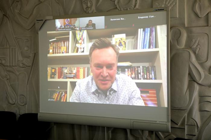 Дистанційно з доповіддю виступив журналіст, телеведучий, слухач магістратури Харківського національного університету внутрішніх справ Андрій Данілевич.