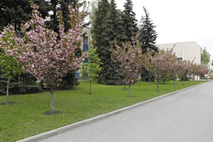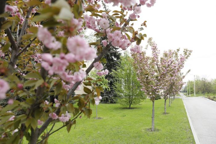 На початку травня в університеті зацвіли сакури. Зазвичай ніжно-рожевими квітами дерева вкриваються наприкінці квітня, але через несприятливі погодні умови цього року сакури вкрилися пишними рожевими квітами пізніше. Як відомо, сакура вважається символом Японії. Її цвітіння довгий час сприймалося як виключно японське традиційне видовище. Жителі Японії вірять, що в кольорах сакури живуть душі предків. Споглядаючи красу цвітіння, вони міркують про своє минуле та майбутнє. Однак сьогодні зовсім не обов'язково вирушати в далеку Японію, щоб побачити це диво. Сьогодні сакура росте в багатьох куточках землі, в тому числі й у Харківському національному університеті внутрішніх справ.