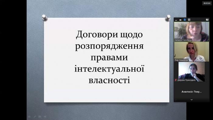 Темою дискусії стали договори про розпорядження майновими правами інтелектуальної власності, їх правове регулювання в Україні та за кордоном, види таких договорів та їх особливості.