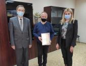 Декан факультету № 6 Харківського національного університету внутрішніх справ доктор юридичних наук Оксана Брусакова за участі завідувача кафедри соціально-гуманітарних дисциплін цього ж факультету професора Володимира Греченка вручила «Подяку декана» доценту кафедри, кандидату історичних наук Віталію Заборовському за організацію і проведення упродовж останнього місяця трьох студентських Міжнародних науково-практичних конференцій та круглих столів онлайн. Оксана Брусакова поздоровила викладача та побажала йому нових успіхів на освітньо-науковій ниві.