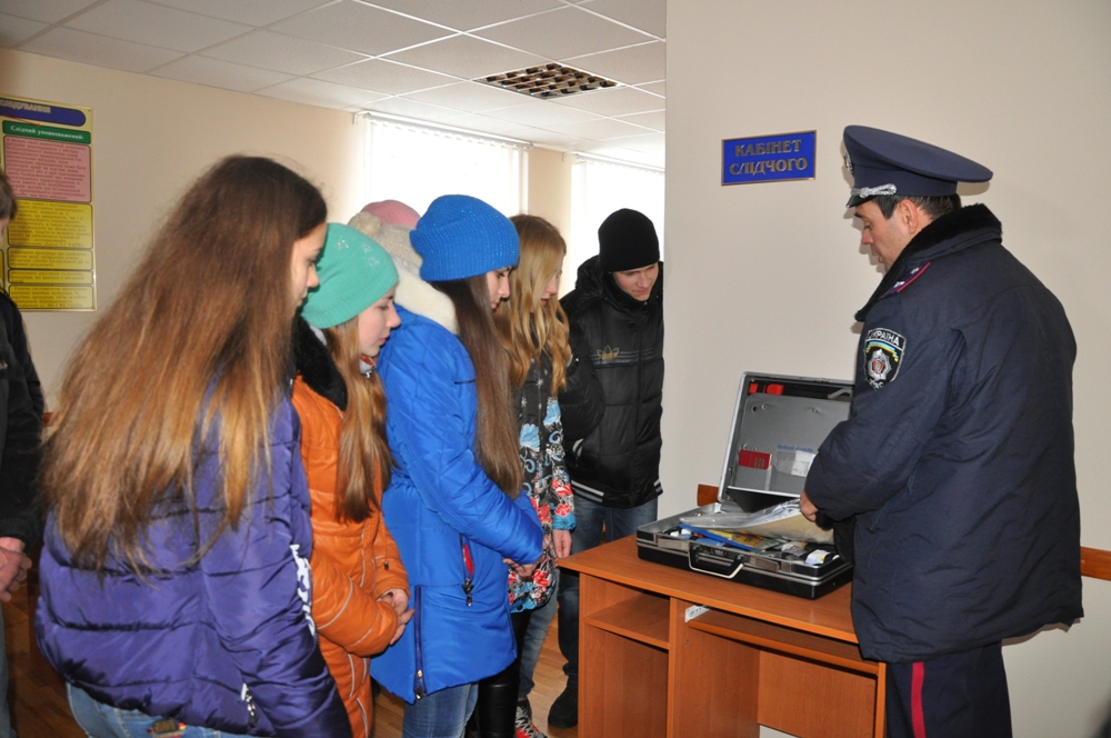Школярі ознайомилися з можливостями мультимедійного тиру кафедри вогневої підготовки, з роботою навчально-тренувального центру протидії кіберзлочинності та моніторингу кіберпростору, відвідали криміналістичний полігон і райвідділ поліції. Викладачі кафедри криміналістики, судової медицини та психіатрії факультету № 1 розповіли юнакам і дівчатам про науку дактилоскопію, продемонстрували валізу криміналіста, провели процедуру зняття відбитків пальців та пошук слідів рук за допомогою спеціальних порошків.