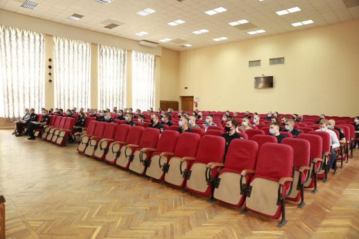 Зі слухачами курсів підвищення кваліфікації зустрівся перший проректор університету полковник поліції Дмитро Швець. Він наголосив на дотриманні службової дисципліни під час навчання, закликав наполегливо оволодівати знаннями, які знадобляться у подальшій службовій діяльності, а також дотримуватися карантинних вимог. Перший проректор зазначив, що в університеті є всі умови для навчання, занять спортом та самопідготовки.