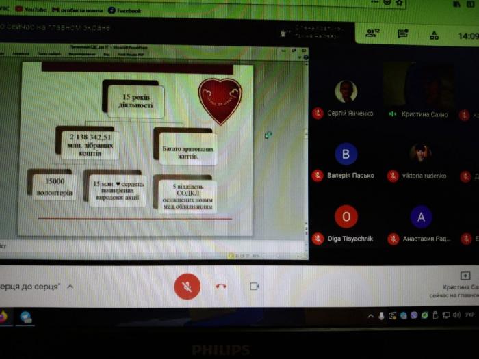 У нараді взяли участь представники закладів вищої освіти. Обговорювалися питання щодо проведення благодійної акції «Серце до серця». Виступили організатори цієї акції Христина Сахно та Єгор Ганжа, які представили презентацію та ознайомили усіх присутніх з умовами проведення 16-ї благодійної акції, яка пройде під гаслом «Здорові немовлята».